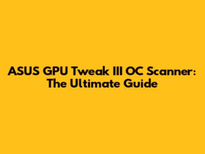 ASUS GPU Tweak III OC Scanner: Ultimate Guide