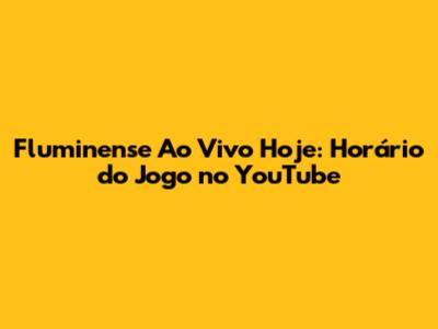 Fluminense Ao Vivo Hoje: Horário Do Jogo No YouTube