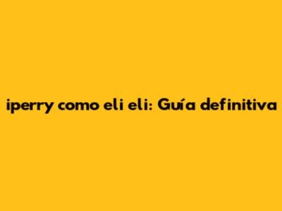 Iperry Como Eli Eli: Guía Definitiva