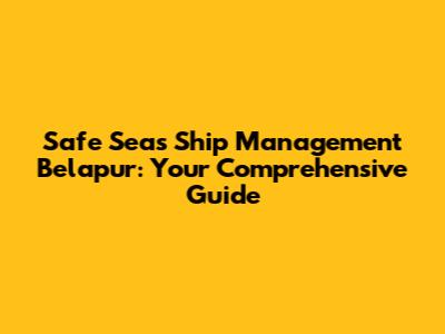 Safe Seas Ship Management Belapur: Your Guide