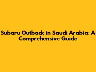 Subaru Outback In Saudi Arabia: A Comprehensive Guide